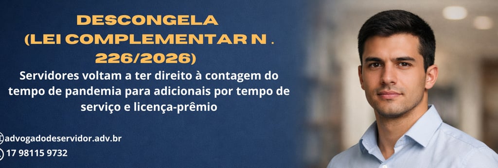 A Lei Complementar n.º 226, de 12 de janeiro de 2026, “descongelou” a contagem do tempo de serviço na pandemia ao revogar a vedação que impedia o cômputo do período de 27/05/2020 a 31/12/2021 (583 dias) para fins de aquisição de adicionais por tempo de serviço e licença-prêmio, fazendo com que esse intervalo volte a integrar o tempo de efetivo exercício e possa antecipar progressões e benefícios em diversas carreiras; o artigo explica o que são essas vantagens, relembra o impacto do congelamento imposto pela LC 173/2020, aponta os efeitos práticos do novo cômputo e esclarece que o pagamento retroativo dependerá de lei específica de cada ente federativo, recomendando atenção às normas locais e a busca de orientação jurídica em caso de falhas no recálculo